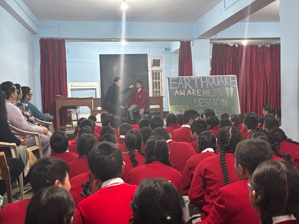 An Earthquake Awareness Program was conducted in our school to educate students about earthquake safety and preparedness. The program aimed to make students aware of the causes of earthquakes and the precautions that should be taken before, during, and after an earthquake. Teachers explained important safety measures such as staying calm, taking cover under sturdy furniture, and moving to open areas away from buildings. A mock drill was also organized where students practiced evacuation procedures in an orderly manner. The program helped students understand the importance of disaster preparedness and how to protect themselves and others during an earthquake. It was an informative and useful activity for everyone in the school.